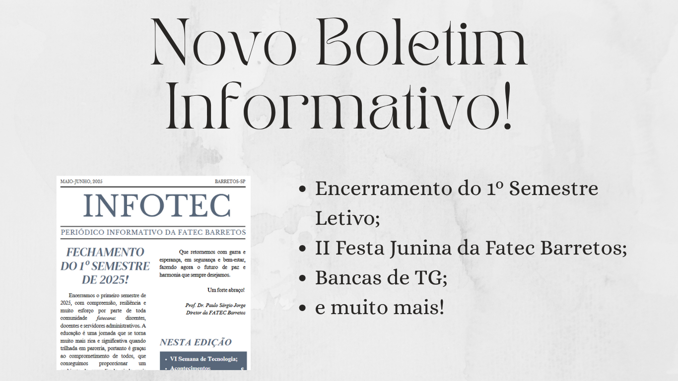 Em clima de encerramento de semestre, excelentes apresentações de trabalhos de graduação e uma festa junina, a FATEC BARRETOS fecha o 1º semestre de 2025, com muito aprendizado e esperanças para um excelente 2º semestre!