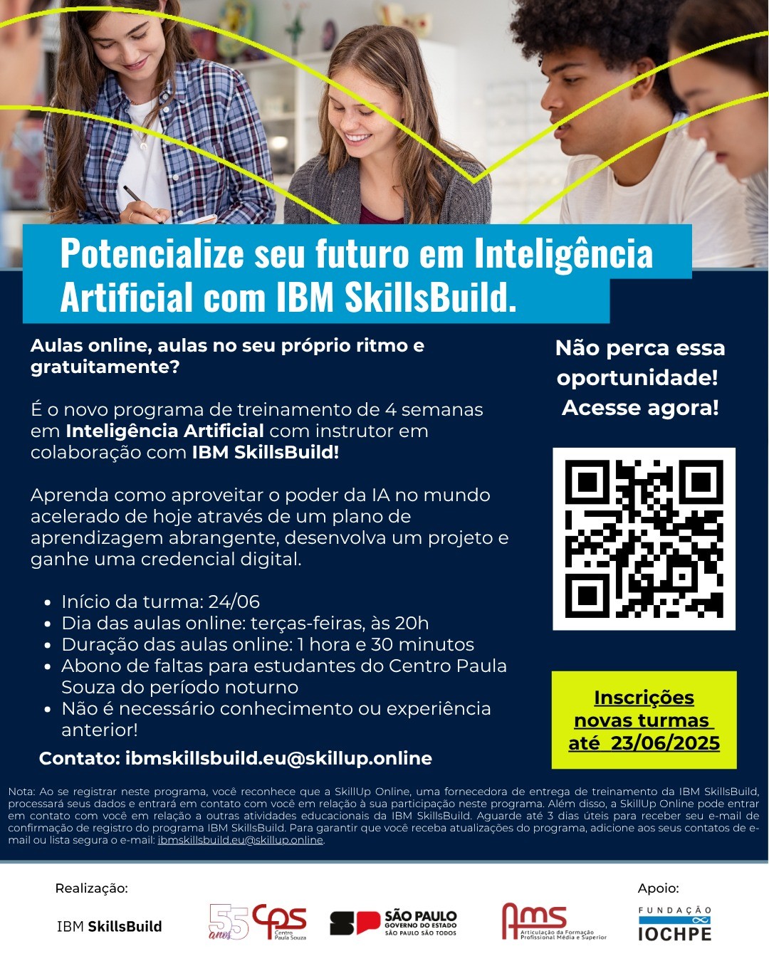 🚨 Inscrições prorrogadas! 🚨 Ainda dá tempo de se inscrever no programa gratuito de capacitação em Inteligência Artificial!A formação é 100% online, com credencial digital ao final, e voltada para maiores de 18 anos. 📅 […]